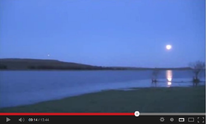 The Phoenix Lights as they appeared to Lynne D. Kitei's video camera on the evening of March 13, 1997.