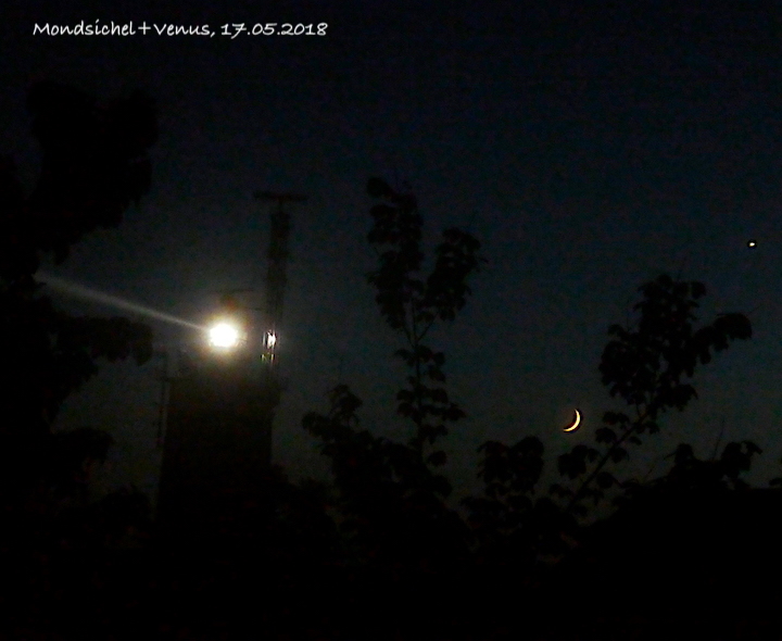Spechtelalarm über Helgoland, trotz Leuchtturm gut die Leuchtkraft der Venus zu sehen und heute noch Mondsichel als Ergänzung zu Frühlings-Himmel: