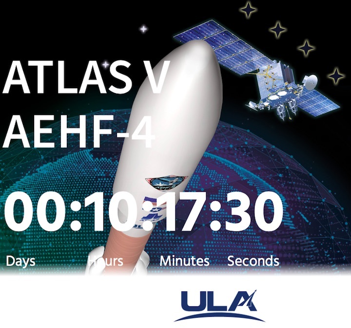 Join us this evening for live reports throughout the Atlas V countdown to the AEHF-4 satellite launch. Our updates from the Atlas Spaceflight Operations Center will begin on this page at 5:15 p.m. EDT (2115 UTC), just prior to initiating the countdown.
