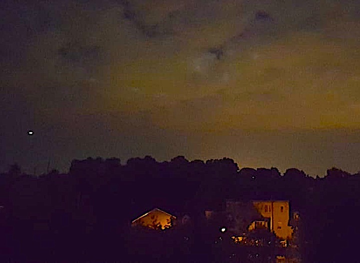 Per E-Mail bekamen wir 4 Fotos nachträglich von Herrn K.M. zugesandt, nach dem der Beobachter uns über unsere Hotline am frühen Morgen erreicht hatte und über 2 Stunden einen auffälligen leuchtenden "großen Stern" in leicht rötlicher Farbe sehen konnte:
