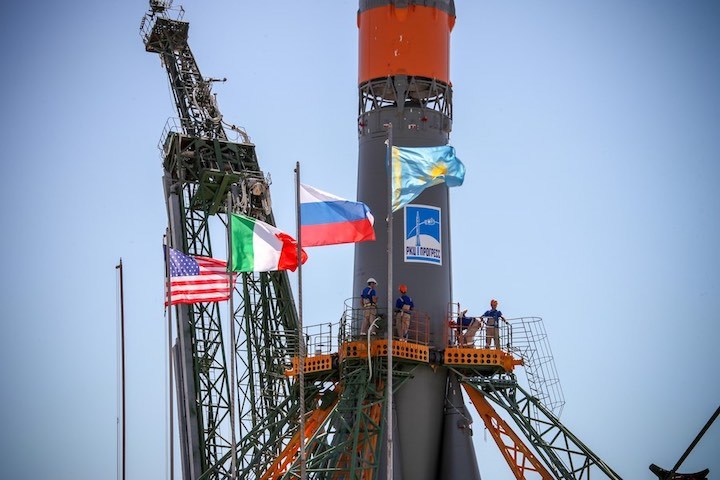The kerosene-fueled Soyuz booster will climb away from the barren Central Asia spaceport with more than 900,000 pounds of thrust. Liftoff is scheduled for 9:28:21 p.m. local time at the Baikonur Cosmodrome.
