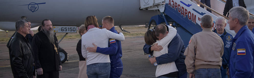 Search and rescue teams were deployed to the landing site. Hague and Ovchinin are out of the capsule and are reported to be in good condition. They will be transported to the Gagarin Cosmonaut Training Center in Star City, Russia outside of Moscow.