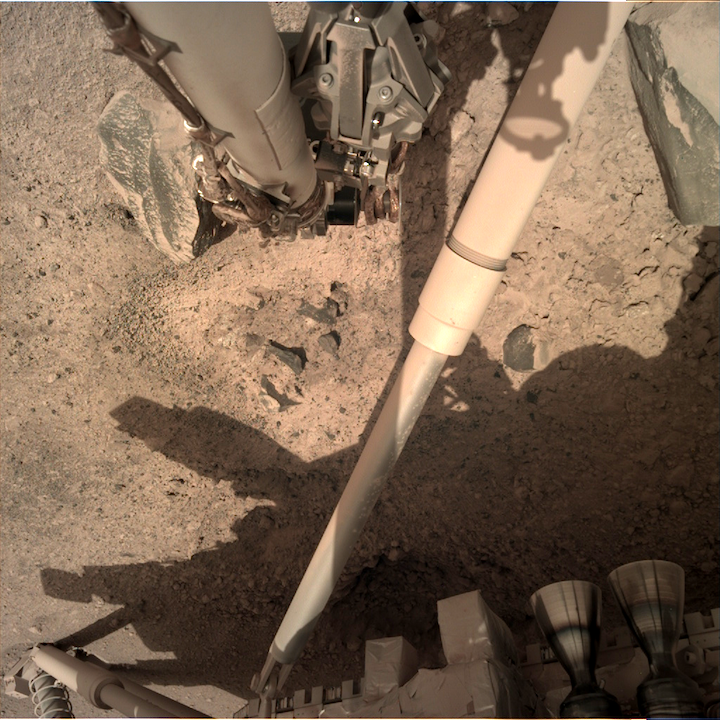 Assuming that there are no unexpected issues, the InSight team plans to deploy the heat probe onto the Martian surface by late January. HP3 will be on the east side of the lander's work space, roughly the same distance away from the lander as the seismometer.