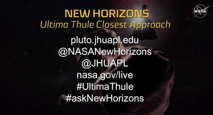 — NASA entered the new year with a new horizon, the farthest-ever encounter with a planetary object. The agency's New Horizons probe, which in 2015 was the first to zip past Pluto , flew by the even more distant small world "Ultima Thule" (officially 2014 MU69) on New Year's Day (Tuesday, Jan. 1). It was the first close pass by a spacecraft of a Kuiper Belt object, one of the primordial building blocks of the planets in our solar system. Mission managers and scientists, together with their family members and invited guests at the Johns Hopkins University Applied Physics Laboratory (APL) in Laurel, Maryland, joined in a New Year's Eve-style countdown to the flyby's closest approach, just 33 minutes after doing the same to welcome in 2019. "5, 4, 3, 2, 1... go New Horizons!" exclaimed Alan Stern, principal investigator for the New Horizons mission. "Go New Horizons! Woohoo!" Traveling at about 32,000 miles per hour (14 kilometers per second), the New Horizons probe came within about 2,200 miles (3,500 kilometers) of Ultima Thule (pronounced "Ultima Too-lee") at 12:33 a.m. EST (0533 GMT). The spacecraft, which is about the size and shape of a baby grand piano, was programmed to record science data and capture images of the city-size world, of which little was known about in advance. "We hardly know anything about it, even after the three and a half years of chasing it down and studying it with the Hubble Space Telescope," said Stern at a pre-flyby press conference. "We have only been able to learn a few things about it. We know it is about 30 km [18 miles] in size. We know that it is red. We know its orbit very precisely." "We don't know much else, other than it has an irregular shape. That is all going to change because New Horizons is bringing these amazing sensors there," he said. The flyby, which took place at a distance of about 4.1 billion miles (6.6 billion km) from Earth and about 1 billion miles (1.6 billion km) further out from the orbit of Pluto, took only seconds to complete, but New Horizons will need the next 20 months to transmit the seven gigabytes of data it was expected to collect at about 1,000 bits per second. Radio signals from the spacecraft take more than six hours to traverse the distance from the Kuiper Belt to Earth. The first close images are expected to be released on Wednesday (Jan. 2). Prior to the flyby, the best that New Horizons' Long Range Reconnaissance Imager (LORRI) was able to capture rendered Ultima Thule at only two pixels wide, which was an improvement over the single point of light that had been the only available view since Ultima was discovered in 2014. New Horizons flew past Ultima Thule at an approach that was about three times closer than it had been to Pluto on July 14, 2005 . Using its seven on board science instruments, New Horizons was pre-programmed to to collect geological, geophysical, compositional and plasma data on Ultima. It was also to search for any satellites (or moons), rings and atmosphere around the body. The data may help answer some of scientists' key questions about the formation of planets, as well as the nature of "cold classical" Kuiper Belt objects that follow circular orbits in the same plane as the planets. "We want to understand how objects like Ultima were assembled," Stern said. "There are two basic theories for how the building blocks for planets were assembled. In one case, you put objects together piece by piece. And then in the other theory, they are built by a hail storm of pebbles, boulders and other types of particles. Depending on whether we see a heterogeneous object or a monolithic object, we might be able to find out which of those theories is correct." The New Horizons spacecraft launched from Earth on Jan. 19, 2006. Following its encounter with Pluto nine years later, the spacecraft was assigned the extended mission to explore the Kuiper Belt, study distant Kuiper Belt objects, heliospheric dust and plasma science as far out as 50 times the distance from Earth to the Sun through 2021.New Horizons' flyby of Ultima Thule , history's first encounter with an object that was discovered after the mission to it began, continues a 60-year legacy of NASA pioneering space exploration. "I think it is fitting that this flyby of Ultima Thule is at the interface of the 60th anniversary of [the launch of the first American satellite] Explorer 1 in 2018 and the 50th anniversary of Apollo 11 [the first moon landing mission] in 2019. To me this milestone for New Horizons is full everything that NASA and NASA science is all about," Thomas Zurbuchen, NASA's Associate Administrator for Science at NASA Headquarters in Washington, D.C., wrote in an email to Stern. "Fifty years ago, the first humans walked on a different world, the moon, as a result of NASA," said Stern. "And NASA was actually the first space agency to reach every planet in the solar system, from the closest planets, Venus and Mars, to the farthest, Pluto. And now we are out there going even farther."