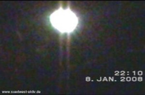 Das kam mir wegen der sehr langen Beobachtungszeit recht ´spanisch´ vor, vor allen Dingen auch weil das verwendete Foto aus dem Video doch eine recht fette Lichterscheinung zeigt, die mich eher an eine recht intensive Strassenlampe etc erinnerte als ein Flugzeugscheinwerfer in der Ferne. Da bestand einfach Untersuchungsbedarf, also rief ich um 11 h in Sachen weiterer Ermittlungen die Zeitungsredaktion an und sprach mit Herrn Bomm, der den Artikel schrieb. Kurzum, Leser hatten ihn inzwischen darüber informiert, was da wirklich los gewesen war. Es war tatsächlich das Scheinwerferlicht am Ende eines Lichtmastes, der vom THW unweit zwecks einer THW-Übung aufgefahren war und etwas über die Bäume hinausragte und dann zudem aus der Perspektive heraus ungewohnt war und so komisch ausschaute. Ungewöhnliches IFO, aber nicht wirklich gänzlich unbekannt als UFO-Eindrucks-Erzeuger, wenn auch in der Gesamtmenge der Sichtungsdarstellungen schier vernachlässigbar. In dem Artikel wurde zudem indirekt etwas auf uns hingewiesen - und auf die herumfliegenden MHBs! Gut. Jetzt gilt es nur zu hoffen, dass wenigstens diese Zeitung die Sache auch mit dem richtigen IFO-Stand aufklären wird.