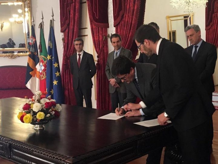 Portuguese officials sign the charter to establish the national space agency, Portugal Space, at a ceremony on São Miguel Island on March 18, 2019.