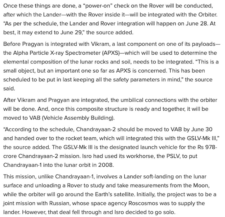 Chandrayaan-2 is scheduled to take off on 15 July and land near the Moon’s South Pole, an uncharted territory, in what has been described as ISRO’s most complex mission ever.
