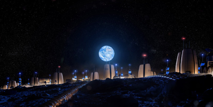 A view of the Earth from the Moon Village. (Courtesy SOM/Slashcube GmbH)