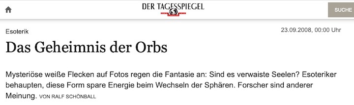 Der `Tagesspiegel´ ( http://www.tagesspiegel.de/weltspie... ) nahm sich in Sachen ?soterik´ dem "Geheimnis der Orbs" an: