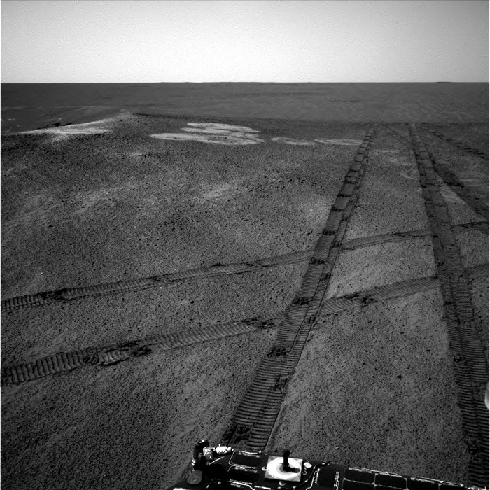 Left Navigation Camera Non-linearized Downsampled EDR acquired on Sol 68 of Opportunity's mission to Meridiani Planum at approximately 15:03:05 Mars local solar time. NASA/JPL