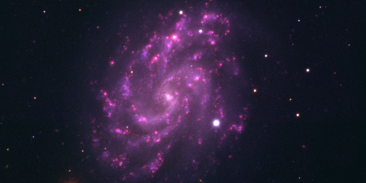The supernova SN 2007af shines clearly near the lower-right edge of the spiral galaxy NGC 5584.
