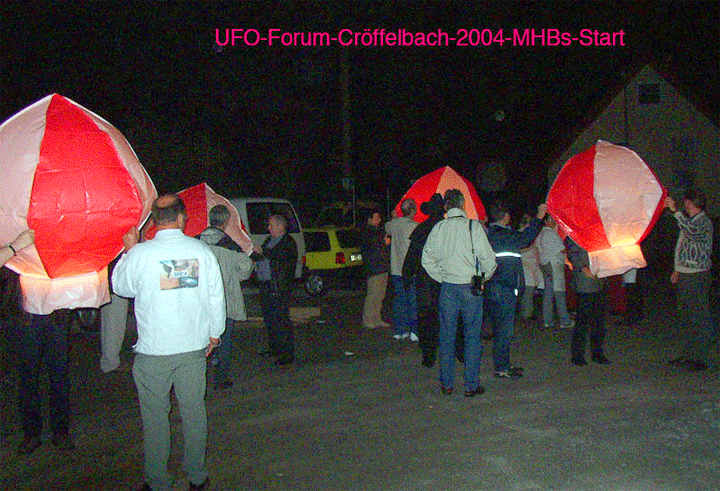 Auch bei unseren Fachtagungen in Cröffelbach wurden solche Mini-Heißluftballons gestartet und für die Teilnehmer immer ein guter IFO-Erfahrungswert. Gerade weil oft bei den Hardcore-Ufologen behauptet wurde, diese MHB´s nicht in Formation fliegen würden, was aber haltlos war auf Grund ihrer nicht vorhandenen Kenntnis darüber, wie nachfolgender Foto-Beweis zeigt: