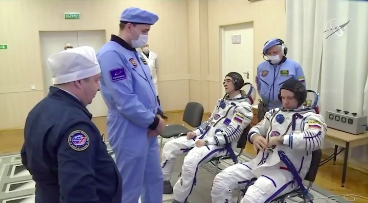 The spaceflight industry is not immune to the pandemic, and some pre-launch traditions for normal Soyuz missions have had to be cancelled or modified, starting with the traditional media press conference in Star City.