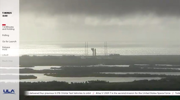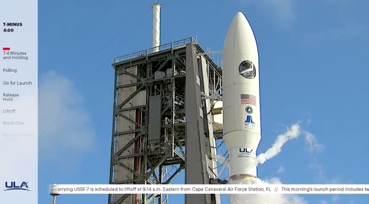 “Conducting the USSF-7 launch with the X-37B Orbital Test Vehicle was deemed critical to perform during this national emergency,” noted ULA in an update earlier Wednesday. “Personnel involved in the launch are following health guidelines such as wearing face coverings, adhering to physical distancing while on console and using virtual connections when possible.”