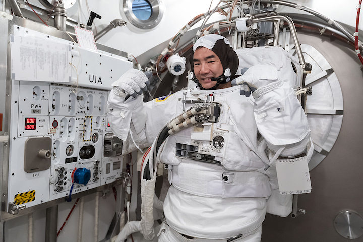 NASAの巨大なプール(縦60m、横30m、深さ12m)で行うこの訓練では、無重量を模擬した環境で宇宙飛行士が船外活動の手順を検証します。 船外活動関連の訓練としては他に、Partial-gravity Offload System (POGO)という人工的に無重力に近い状態を作り出す装置を使って行うものがあります。