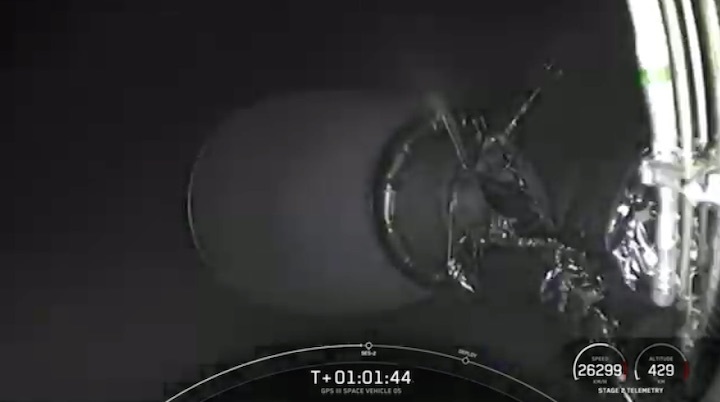 The first satellite to fly under the $290.5 million contract was last November’s GPS III-04, with Thursday’s GPS III-05 set to become the second. The sixth GPS Block III satellite is currently targeted for launch sometime next year.