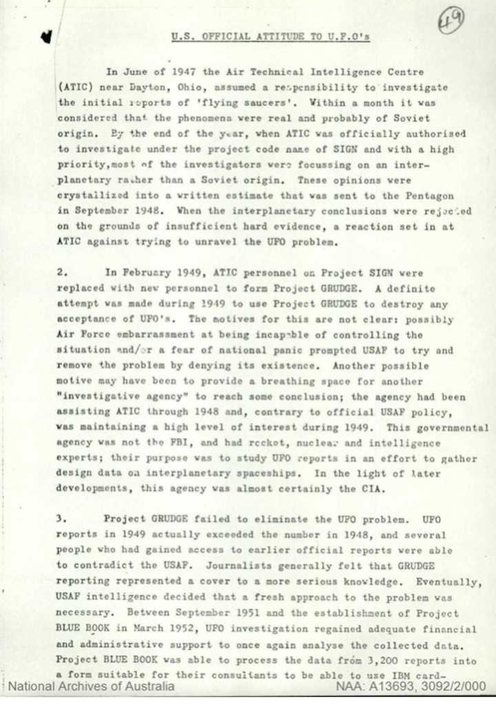 An Australian government declassified UFO report indirectly confirms the existence of off-world aliens or extraterrestrial life.
