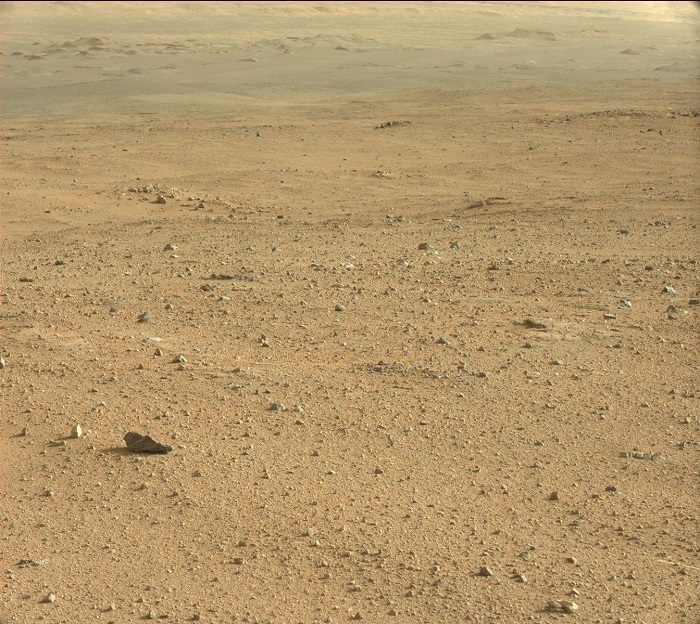 This image was taken by Mars Descent Imager (MARDI) onboard NASA's Mars rover Curiosity on Sol 350 (2013-08-01 00:27:46 UTC).