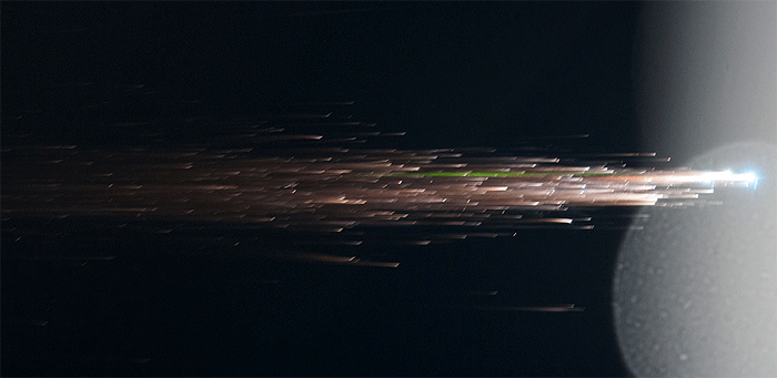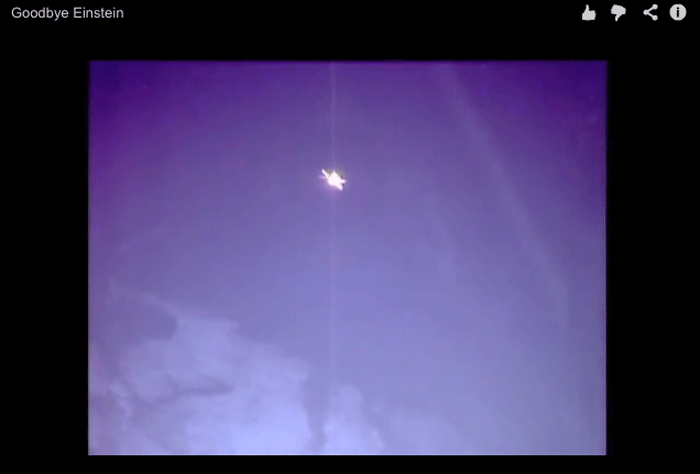This image from the Station was taken whenAlbert Einsteinwas around 100 km directly below and had began its destructive dive. It is the first view of an ATV reentry since the first, of Jules Verne, in 2008.