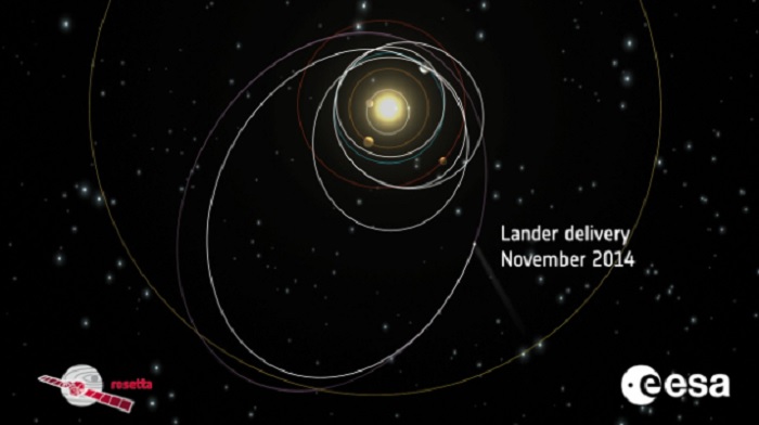Sobald Rosetta mit Lander Philae an Bord den Kometen 67P/Churyumov-Gerasimenko erreicht, wird sie den Kometen bei seinem Weg in Richtung Sonne begleiten. Zum ersten Mal wird eine Raumsonde aus nächster Nähe verfolgen, wie ein Komet durch das Erwärmen aktiv wird. Eine Premiere wird auch die Landung von Philae auf der Kometenoberfläche im November 2014 sein: Niemals zuvor landete ein Gerät auf einem Kometen und untersuchte den Himmelskörper direkt vor Ort. Gesteuert und betrieben wird der Lander dabei vom Kontrollraum des Nutzerzentrums für Weltraumexperimente des DLR. Die Planetenforscher des DLR sind sowohl auf dem Orbiter Rosetta als auch auf dem Lander Philae mit Instrumenten beteiligt.