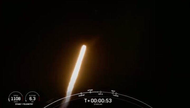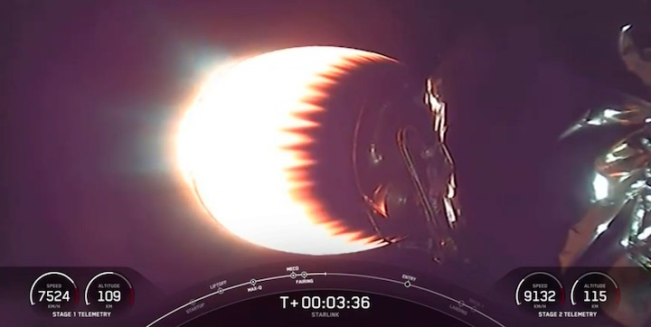 The Falcon 9 upper stage, meanwhile, will continue hauling the Starlink satellites to low Earth orbit, deploying all 55 of them about 63 minutes after liftoff.