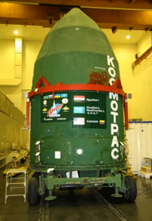 Final checkouts were on tap this week leading to the launch countdown that begins about eight hours before liftoff for the satellites and three hours before T-0 for the Dnepr launch vehicle. The silo-launched, three-stage Dnepr Launch Vehicle stands 34.4 meters tall and is 3.0 meters in diameter with a liftoff mass of 211,000 Kilograms.