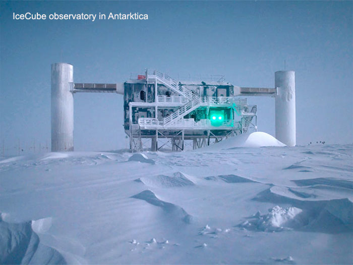 Within the eternal ice of Antarctica, scientists have observed the first solid evidence for high-energy neutrinos coming from cosmic accelerators beyond our own solar system. Between May 2010 and May 2012 the IceCube detector at the South Pole captured a total of 28 neutrinos with energies greater than 30 teraelectronvolts (TeV). Two of the neutrinos had an energy of more than 1,000 TeV — that’s more than the kinetic energy of a fly in flight — compressed into a single elementary particle. The international IceCube collaboration, in which DESY is the second-largest partner after the University of Wisconsin-Madison, now presents these observations in the current cover story of the scientific journal Science.