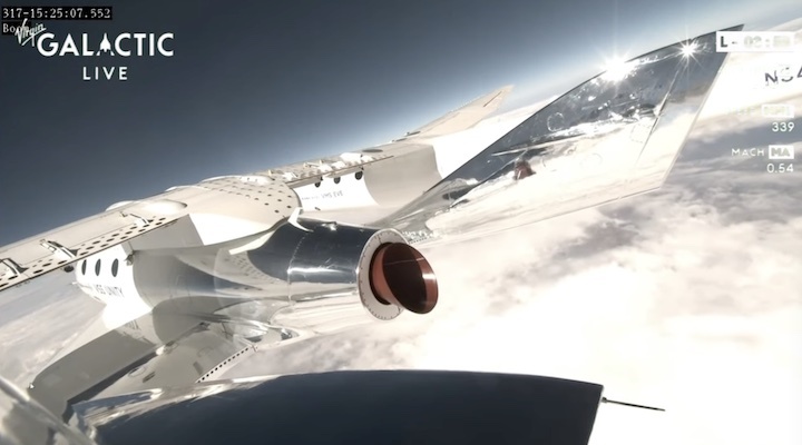 Virgin Galactic’s SpaceShipTwo VSS Unity during its first flight to suborbital space in December 2018. Virgin Galactic via NASA