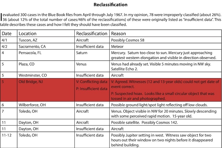 This is the latest edition of the Project Blue Book case review covering April through July 1967. Like the previous evaluations, I tried to examine each case to see if the conclusion had merit. I added comments to help clarify the explanation or if I felt it was not correct or adequate. Those marked in red are cases where there were photographs involved.