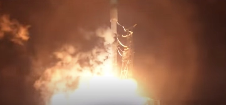 The Falcon 9 rocket blasted off just before 2 a.m. from Space Launch Complex-4 on South Base.