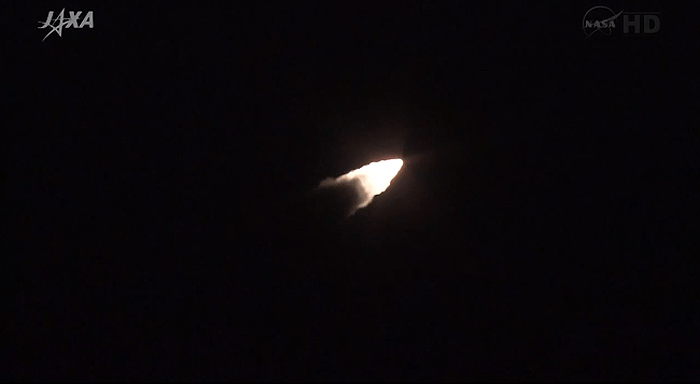 Provided by the Japan Aerospace Exploration Agency and built by Mitsubishi Heavy Industries Ltd., the two-stage rocket accelerated through the speed of sound in less than a minute, dimming from a brilliant fireball to a star-like point of light in live video broadcast from the launch site.