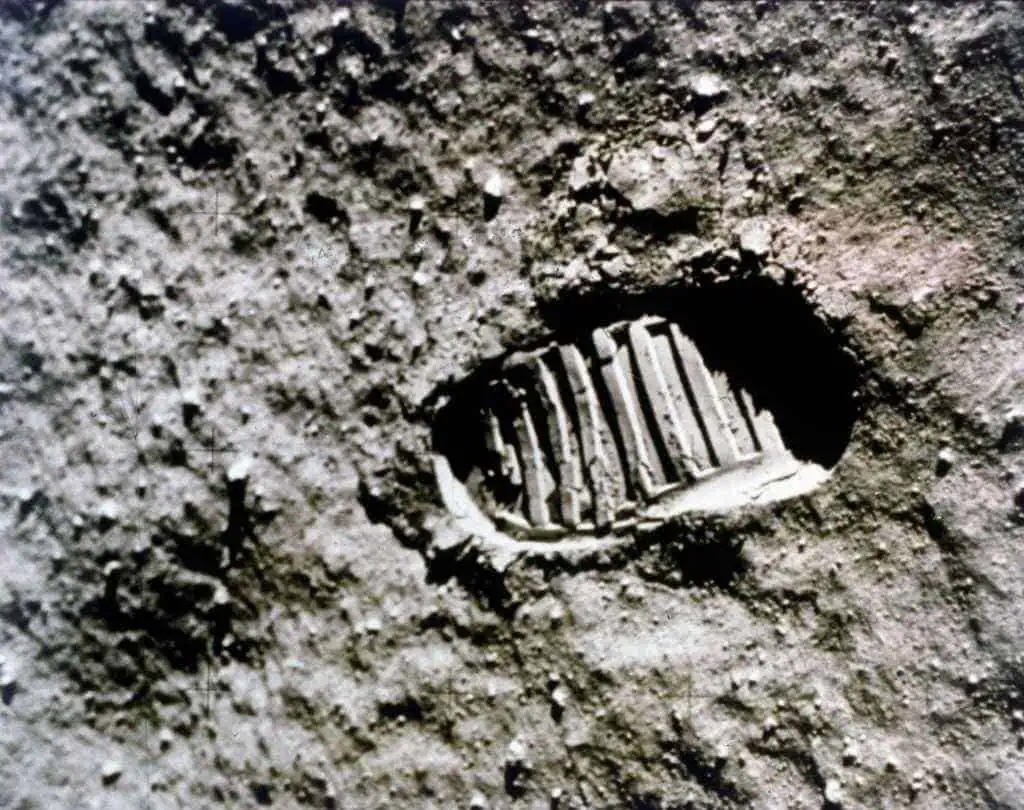 Boot-print of US astronaut Neil Armstrong, first man to set foot on the Moon, clearly visible in the lunar soil. (Photo by Heritage Space/Heritage Images/Getty Images)