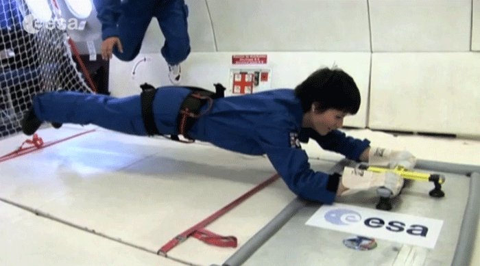 ESA astronaut Samantha Cristoforetti tests her custom-made Sokol spacesuit in a vacuum chamber. Samantha will wear this suit during the liftoff and landing for her six-month International Space Station mission set to start in November this year.