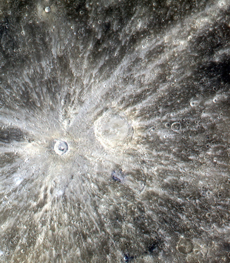 Named after a 12th century Chinese artist, Xiao Zhao is a young 15-mile (24-kilometer) wide crater on Mercury. Its broad, bright rays indicate its youthfulness, as the lighter material ejected by the initial impact has not yet had enough time to grow dark."Young" is a relative term, of course. On Mercury that can still mean several billion years old!This color image was made with a combination of images acquired by NASA's MESSENGER spacecraft on Dec. 29, 2011 with its Wide-Angle Camera (WAC). The individual images were captured in eight different wavelengths, some of which would be visible to the human eye.Just to the right of Xiao Zhao is the larger Eastman crater.By IAU agreement, all newly-discovered craters on Mercury are named after deceased international artists, authors and composers who have made outstanding contributions to their field and have been recognized as significant figures for at least 50 years.
