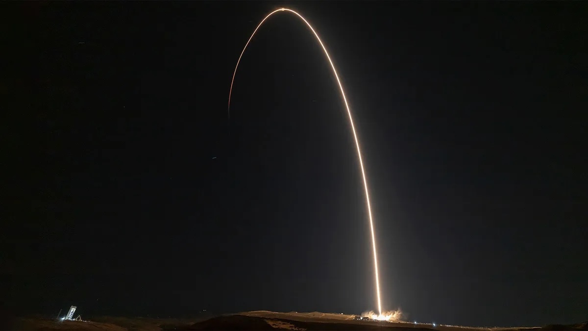 A SpaceX Falcon 9 rocket carrying the NROL-126 mission and 20 Starlink satellite launched from Vandenberg Space Force Station in California on Saturday, Nov. 30, 2024, as seen in this time lapse photo.(Image credit: SpaceX)