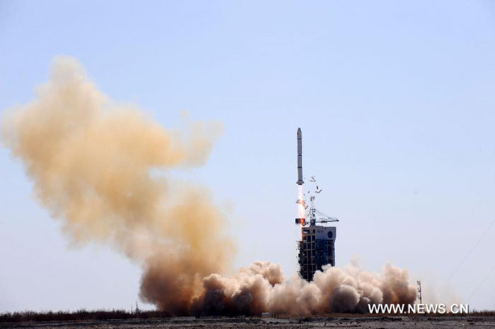 A Long March-2C carrier rocket carrying China's Shijian-11-06 satellite blasts off from the launch pad at the Jiuquan Satellite Launch Center in Jiuquan, northwest China's Gansu Province, March 31, 2014. China successfully launched the experimental satellite into preset orbit from Jiuquan Satellite Launch Center in its northwestern gobi desert on Monday morning.