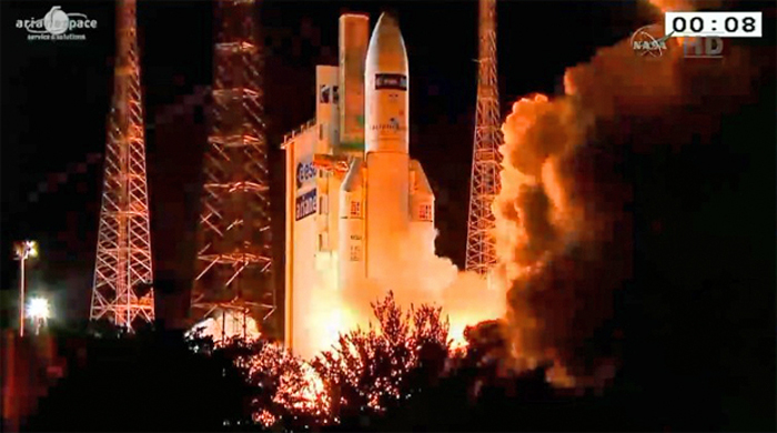 Named after the Belgian scientist who formulated the Big Bang Theory, ATV Georges Lemaître lifted off at 23:47 GMT on 29 July (01:47 CEST 30 July) on an Ariane 5 rocket from Europe’s Spaceport in Kourou, French Guiana.