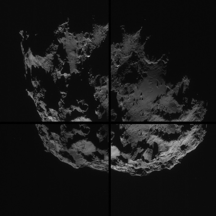 Four image montage of comet 67P/C-G, using images taken on 7 September (with some intensity adjustment and background noise cleaning). CREDIT: ESA/Rosetta/NAVCAM