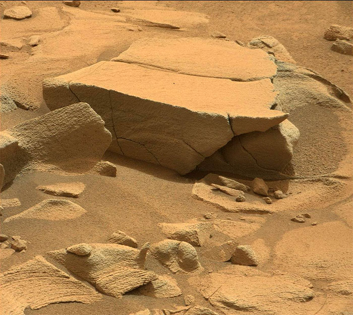 Using an onboard focusing process, the Mars Hand Lens Imager (MAHLI) aboard NASA's Mars rover Curiosity created this product by merging two to eight images previously taken by the MAHLI, located on the turret at the end of the rover's robotic arm.