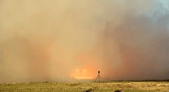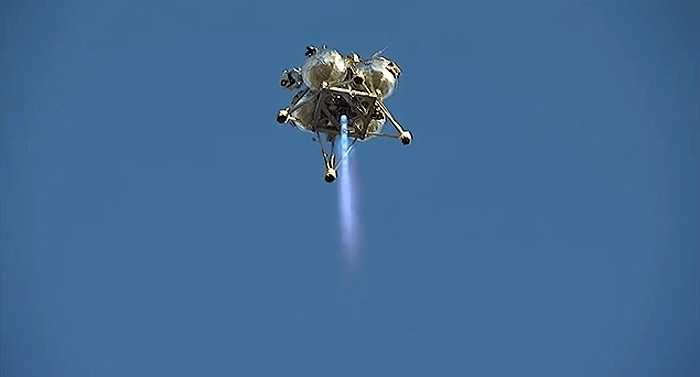 NASA’s Project Morpheus prototype lander soars 800 feet above the north end of the Shuttle Landing Facility at Kennedy Space Center in Florida on free flight test No. 15. During the 97-second test, onboard autonomous landing and hazard avoidance technology sensors, or ALHAT, surveyed the hazard field for safe landing sites, then guided the lander forward and downward to a successful landing.