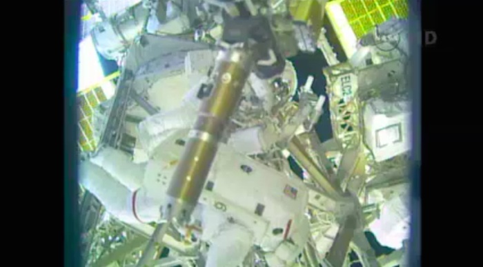 NASA astronauts Terry Virts and Barry Wilmore ended their spacewalk at 12:30 p.m. EST with the repressurization of the Quest airlock. Virts and Wilmore completed installing 400 feet of cable and several antennas associated with the Common Communications for Visiting Vehicles system known as C2V2. Boeing’s Crew Transportation System (CST)-100 and the SpaceX Crew Dragon will use the system in the coming years to rendezvous with the orbital laboratory and deliver crews to the space station.