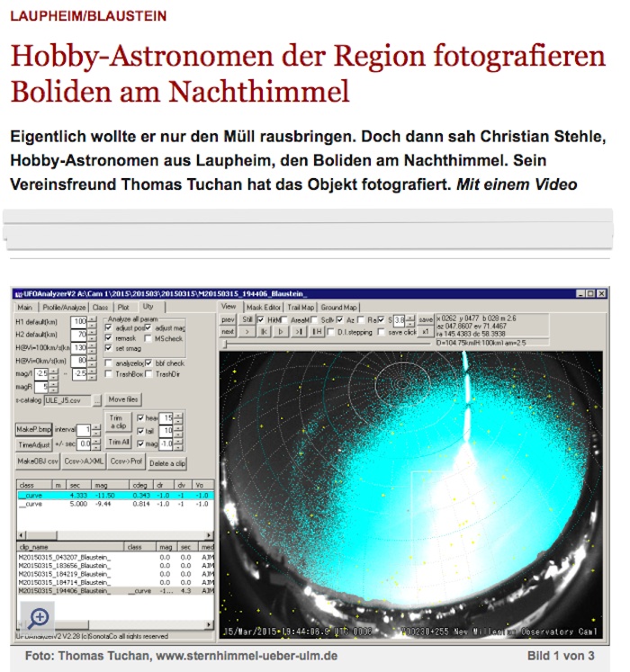 Am 15.03.2015 haben wir den bereits in den Nachrichten veröffentlichten Meteroiten gesehen.