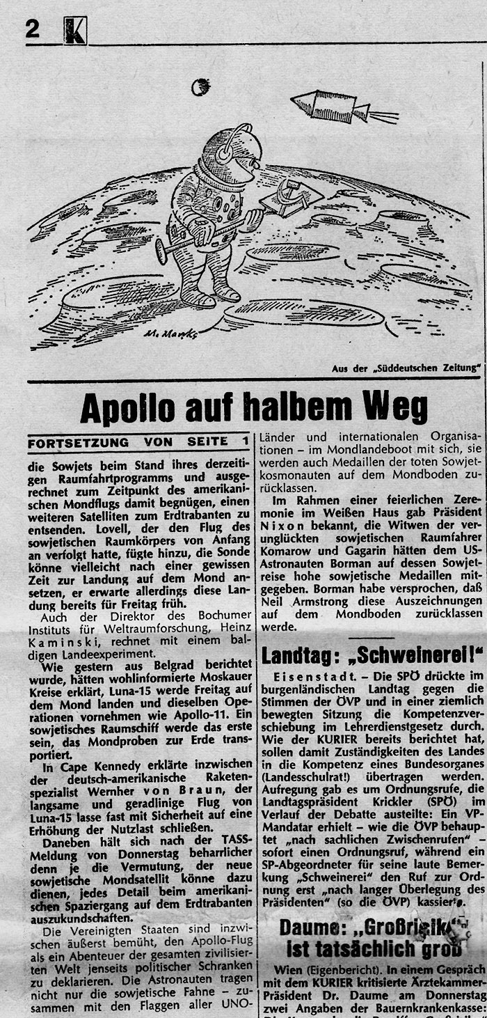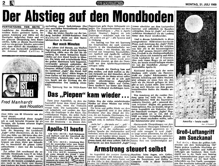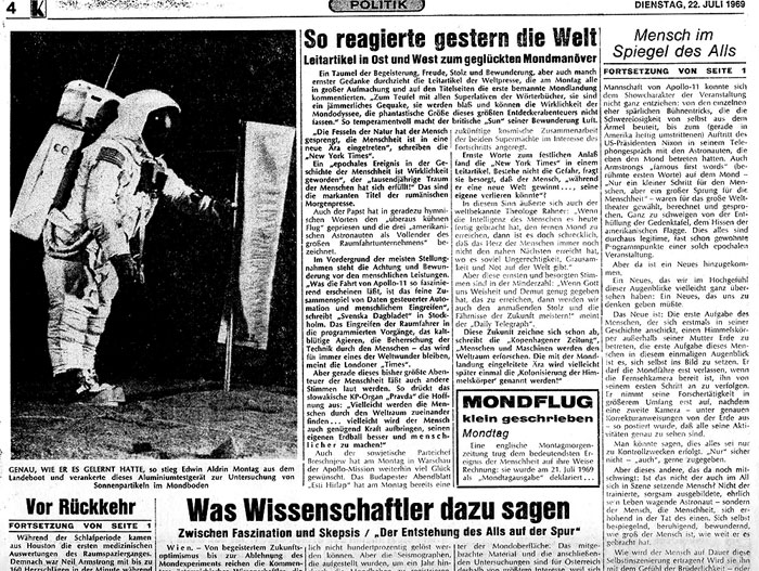 Mittwoch, 29. April 2015 - 11:30 Raumfahrt-History - Die Mondlandung in der Presse -1/2 . Aus dem CENAP-Archiv: . Quelle: CENAP-Archiv Raumfahrt « Zum vorherigen Eintrag Zum nächsten Eintrag » 4712 Views
