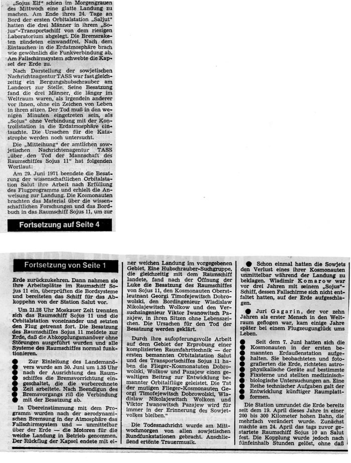Donnerstag, 21. Mai 2015 - 16:00 Raumfahrt-History - 1971: Soyuz 11-Unglück . Aus dem CENAP-Archiv: . Quelle: Abendpost-Nachtausgabe, Spiegel, CENAP-ARchiv Raumfahrt « Zum vorherigen Eintrag Zum nächsten Eintrag » 5860 Views
