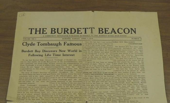The Burdett Beacon from 1930 annoucing Clyde Tombaugh's accomplishment.
