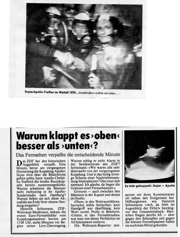 Donnerstag, 30. Juli 2015 - 09:40 Raumfahrt-History - 1975: Apollo-Soyuz-Flug Teil 3 . Aus dem CENAP-Archiv: . . . . . . . . . . . . . . . . . Quelle: CENAP-Archiv Raumfahrt « Zum vorherigen Eintrag Zum nächsten Eintrag » 4132 Views