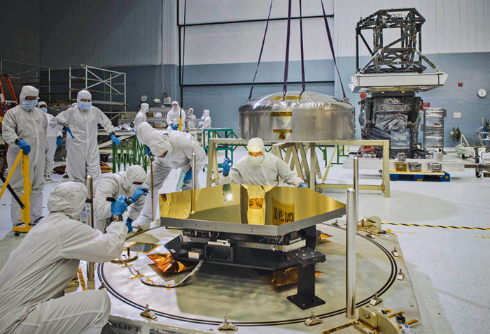 The James Webb Space Telescope (JWST), a NASA collaboration with the European Space Agency (ESA) and the Canadian Space Agency (CSA), continues to take shape in a 1.3 million-cubic-foot clean room as engineers at NASA’s Goddard Space Flight Center in Greenbelt, Md., continue putting together what is being billed as “Hubble’s successor” for a planned late 2018 launch.