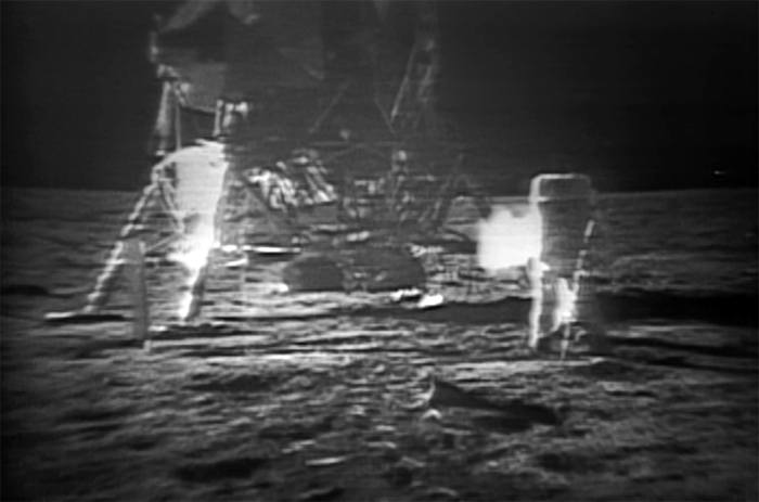 Oben: Aufnahmen von Apollo-11-Mondlandung / Unten: Aufnahmen der Mondsonde LRO von Apollo-Landegebieten auf dem Mond