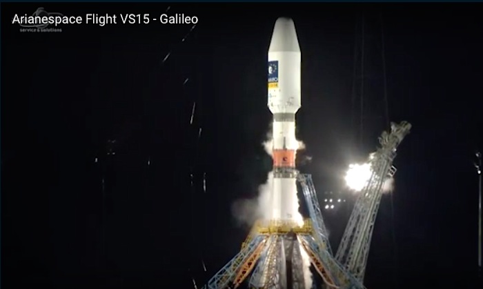 Designated VS15 in Arianespace’s numbering system, next week’s mission is scheduled to lift off at precisely 5:48:43 a.m. a.m. local time in French Guiana, with its Galileo satellite passengers to be deployed into a targeted circular orbit during a flight lasting approximately 3 hrs., 47 min.