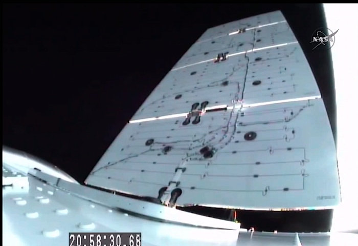 Entfalten der Solar-Flügel von SpaceX-Dragon-CRS-8